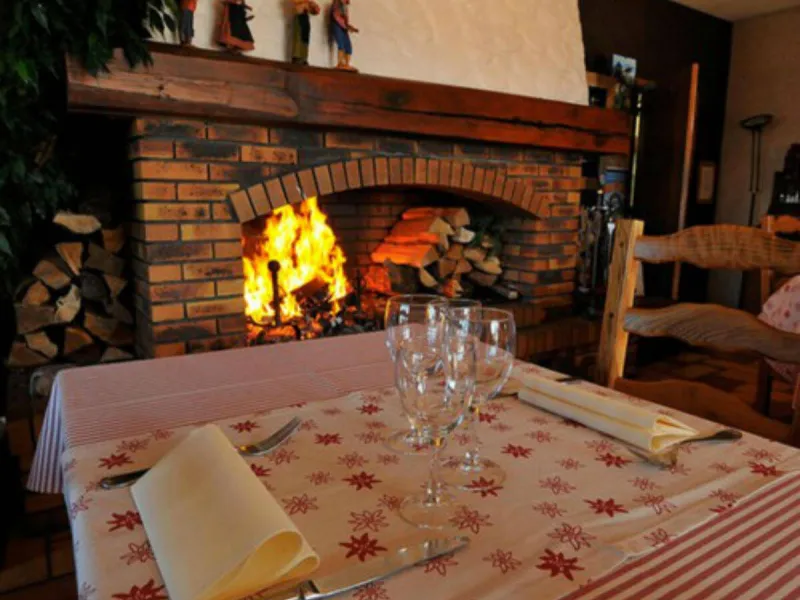 L'hiver, à côté des sommets enneigés, le repas se prend près de la cheminée, dans une ambiance cozy et montagnarde. Bûches crépitantes, couleurs chatoyantes, le bois omniprésent apporte une touche chaleureuse.