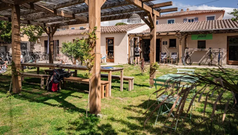 This establishment is Accueil Vélo and offers specific services for cyclists.
