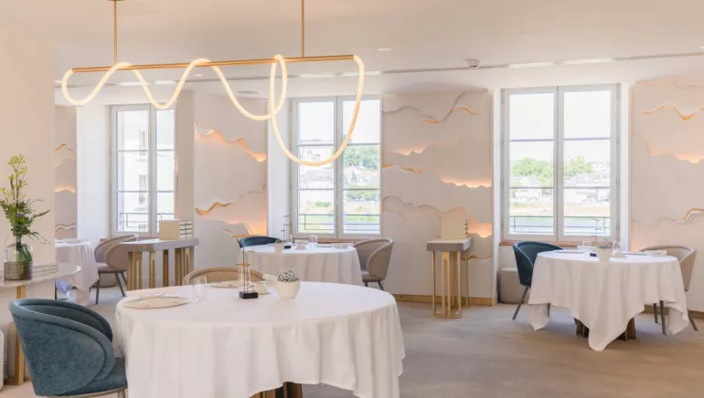 This signature restaurant boasts a unique view. On one side, a majestic panorama of the river; on the other, the church and its stained-glass windows, reminding us of the benevolence and peace this place provides.