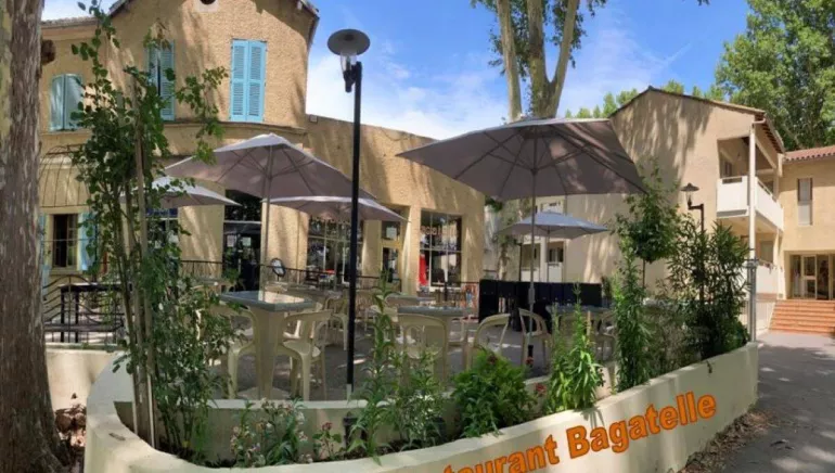The Restaurant Pizzeria Bagatelle, on the garden side (inside the Bagatelle campsite), welcomes you for a moment of relaxation and sharing, on its tree-lined terrace and in its rooms.