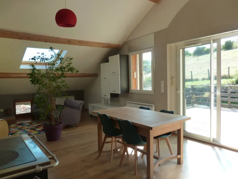 L'appartement qui fait partie d'un ancien corps de ferme est très bien isolé et sans vis à vis sinon avec les paisibles vaches qui passent de temps en temps dans le pré à proximité. Ce logement est spacieux, lumineux et très calme. Pour le couchage, deux chambres et une mezzanine isolée visuellement. Une grande terrasse permet de manger en extérieur. La salle de bain offre une baignoire et une douche à l'italienne. C'est un hébergement idéal pour une retraite sereine ou pour un séjour animé en famille ou avec des amis !Localisation