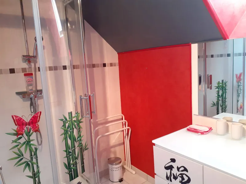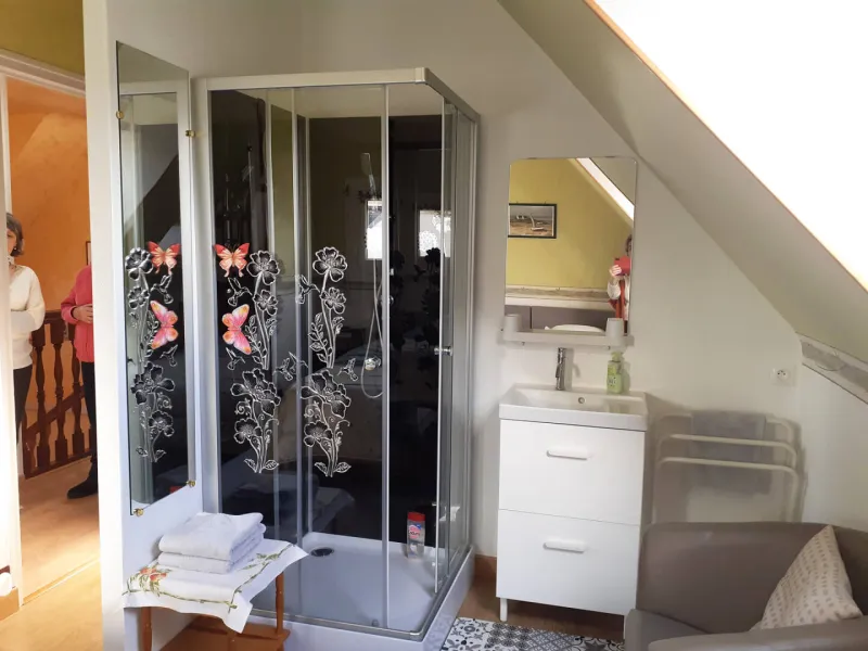 - Bedroom 5: 1 double bed 180 (90 €) separable into 2 single beds 90 (100 €) with private shower, washbasin, wc in the bedroom.