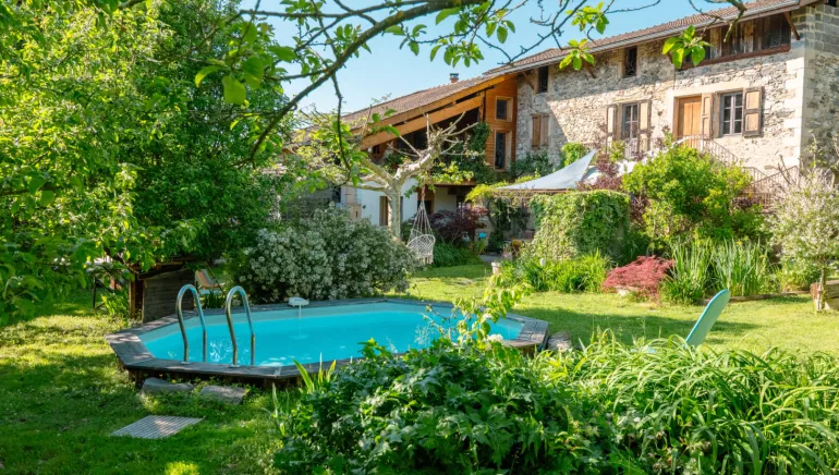 Notre maison est parfaite pour accueillir vos réunions de famille, dans son style vieille ferme typique du Sud-Grésivaudan et ses murs en pierre. Un grand salon très lumineux, donnant sur une terrasse qui surplombe le jardin, un grande salle à manger avec un poële à bois saura réunir jusqu'à 15 personnes. Vous profiterez de 3 chambres à l'étage, avec lits de 160 cm et une mezzanine ouverte sur le salon, avec un lit de 140cm. Une dernière chambre au rdc, parfaite pour les enfants, est équipée de 6 lits de 90 cm superposés. Une salle d'eau à l'étage est équipée d'un WC et une grande salle de bain, avec douche et baignoire au rdc. Un second toilette se trouve à côté. La buanderie est un espace partagé avec les propriétaires, et est équipée d'un lave linge et d'un sèche-linge. La maison n'accueille pas de fêtes bruyantes et alcoolisées, il y a des voisins proches qui seront dérangés à partir de 23h le soir. Possibilité de louer le petit appartement attenant pour venir jusqu'à 19 personnes. La maison est climatisée l'été. Il y a une petite piscine et un grand jardin avec BBQ, et petit terrain pour jouer au ballon. Parking clos pour 3 voitures pour la maison, 4 voitures maison et appartement.