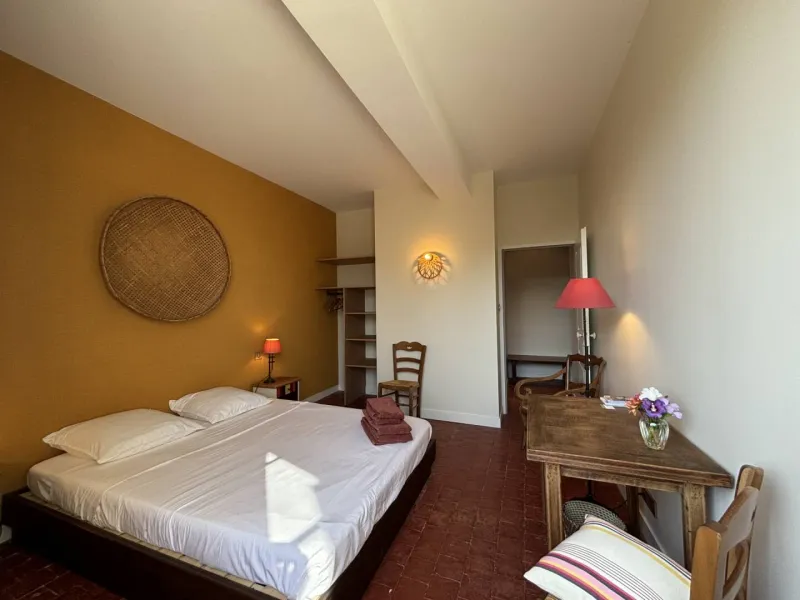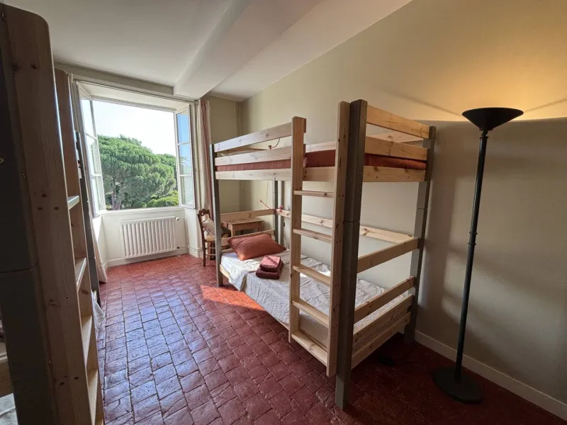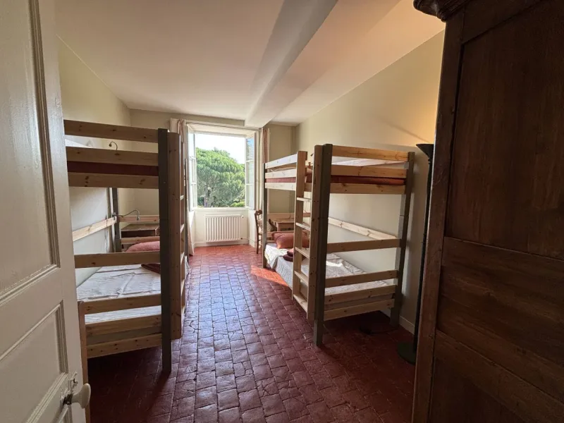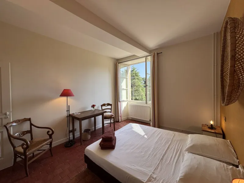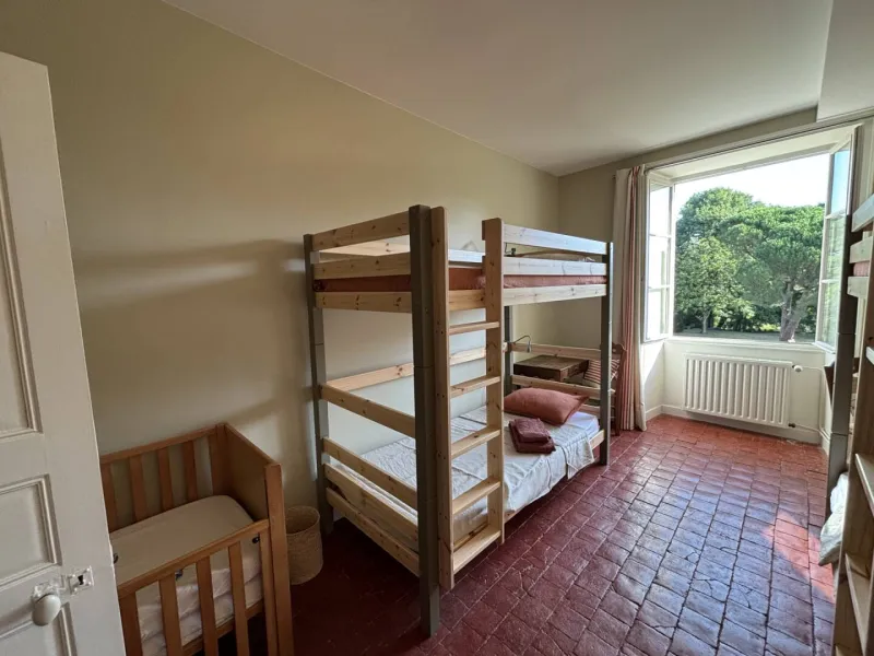 "Les Ifs" is a recently renovated 34m2 master suite with 2 large bedrooms, a shower room and an entrance, for 2 to 5 people: 2 adults + 3 children or 5 adults (1 extra child available on request). It is located in the house of the owners, Stéphane and Marie-Charlotte, overlooking the garden. The master bedroom has a 160x200 bed, while the second bedroom has 2 90x200 bunk beds for 4 people. Storage space, wardrobe, USB and RJ45 sockets complete the facilities. The bathroom has a walk-in shower, separate toilet, double washbasin and hairdryer. An extra bed for a child under 12 or a cot can be provided. Guests have access to the shared communal areas: lounge, dining room, kitchen, entrance hall and outside areas (covered area with large dining table and garden furniture, swimming pool, tennis court, park, private car park, etc.).In the village of Réaumur, the Manoir des Sciences offers a host of fun activities for young and old alike. Le Prieuré is 7 km from Pouzauges, a small town full of character, and 24 km from Le Puy du Fou, with its theme park and cinéscénie. There are many tourist sites to discover in the Vendée near Réaumur or less than 50 km away. Less than 100 km away, you can enjoy the beaches of the Vendée and the towns of La Rochelle, Nantes and Poitiers.