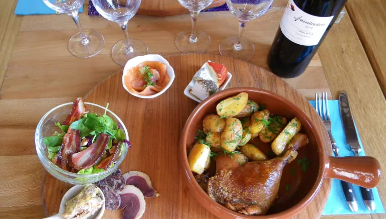 Former lock keeper's house converted into an inn-restaurant with 2 air-conditioned guest rooms with shower, washbasin and toilet, overlooking the canal. The Auberge is located on the Canal des 2 Mers and the greenway linking Bordeaux to Sète. The covered canal-side terrace welcomes guests for breakfast, lunch and dinner. Lunchtime catering is designed to satisfy cyclists, tourists and locals alike, with an original cuisine based on fresh local produce of the highest quality.