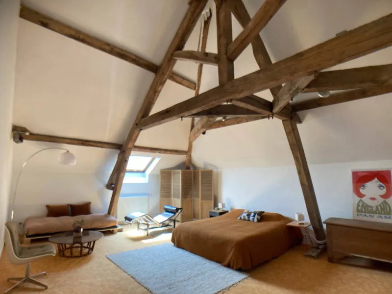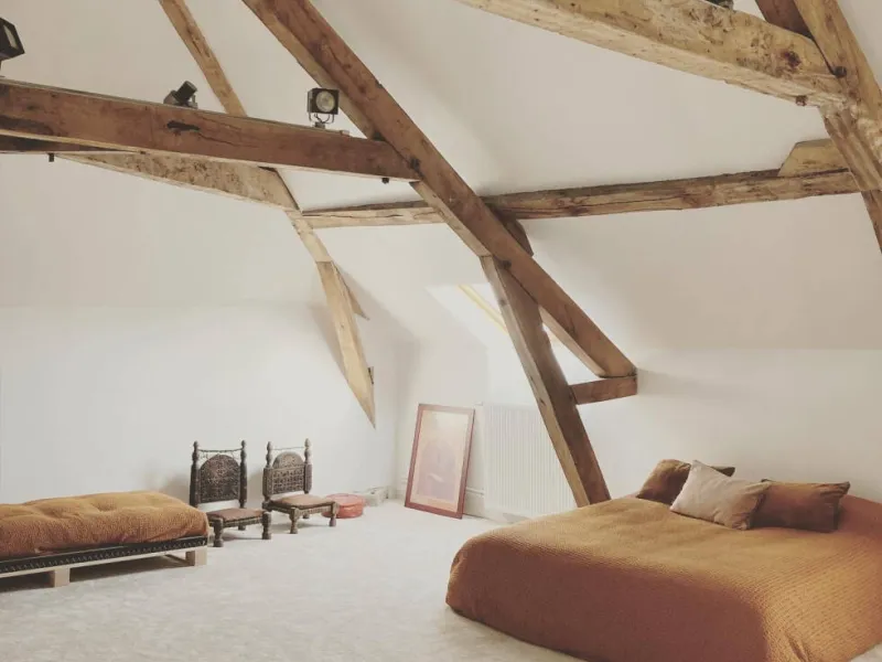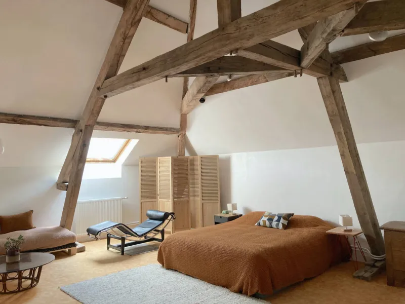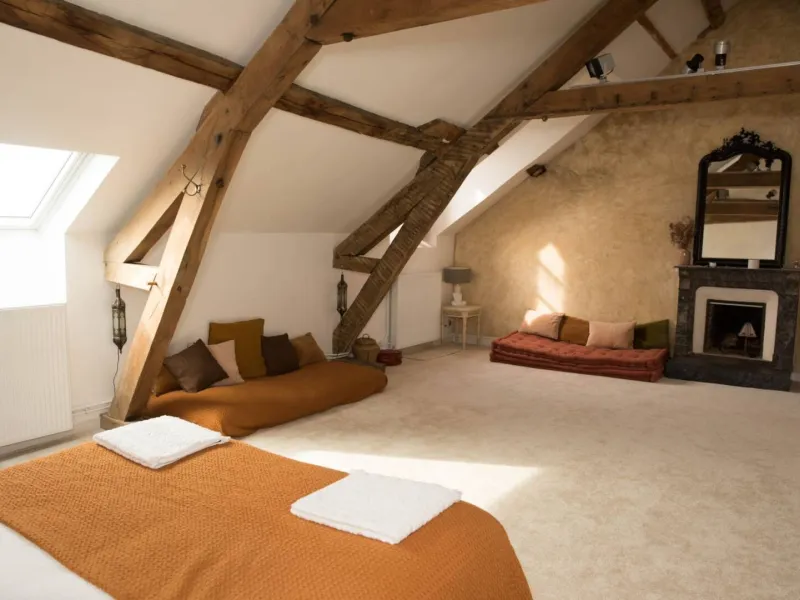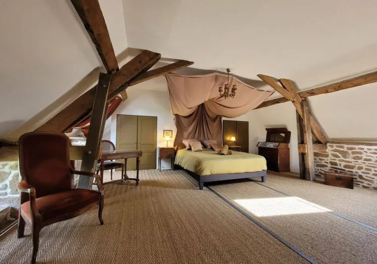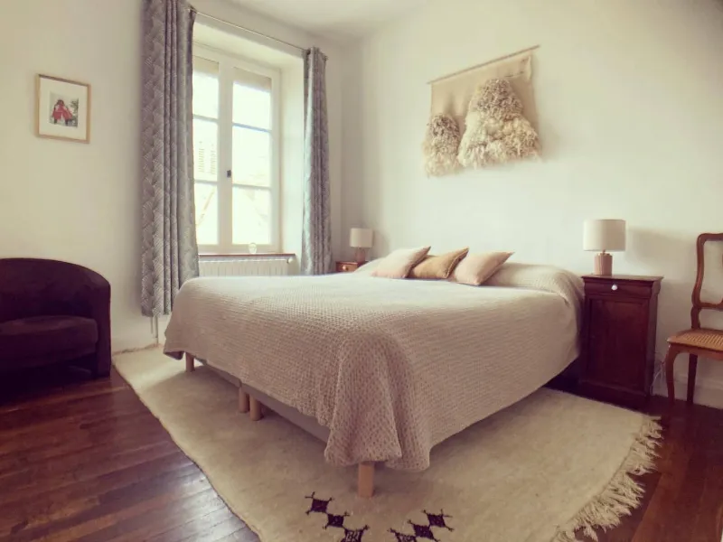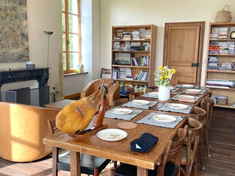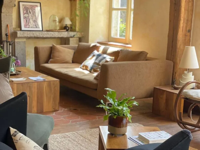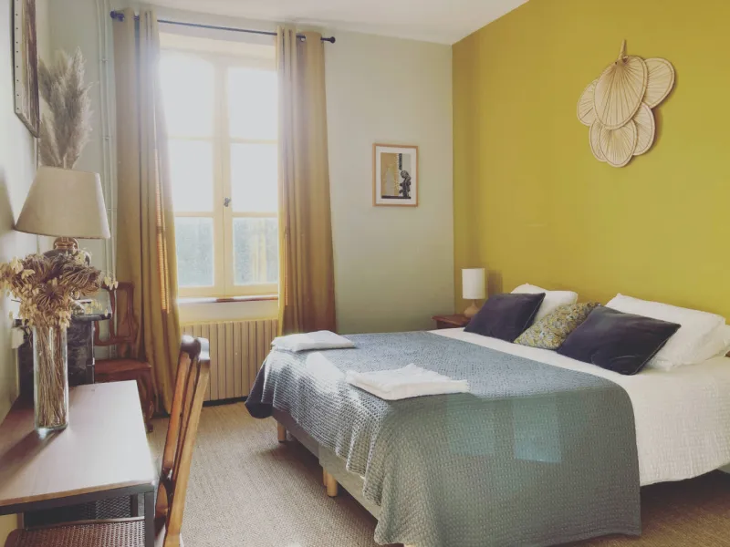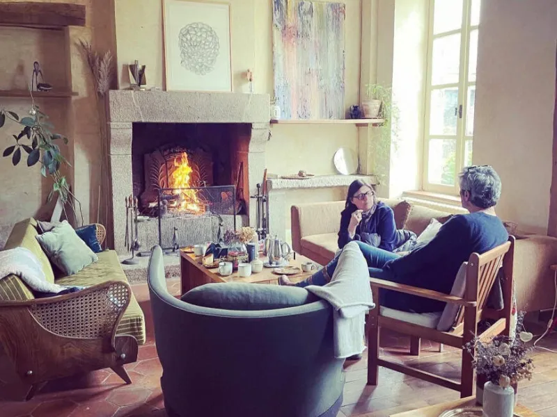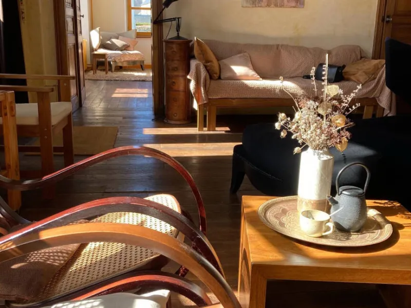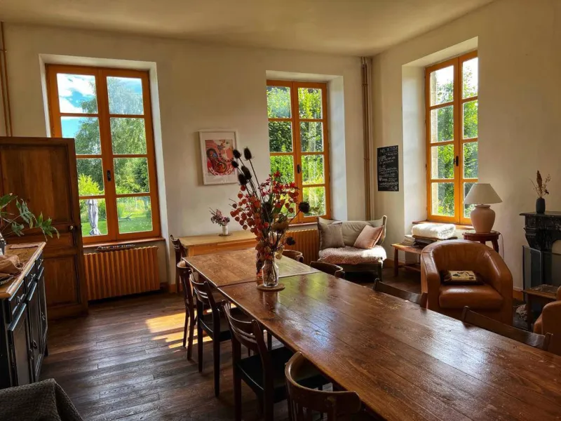 The house, designed as an invitation to relax, contemplate and reconnect with nature and the senses, boasts a number of comfortable areas (large lounges, dining room, cosy fireplace and armchairs, contemporary art, sound therapy room), a terrace overlooking the magnificent 5,000m2 landscaped park (with many trees and a small pond), a large 500m2 vegetable garden with its vegetables and plants (which we use for our table d'hôtes, in addition to a fine selection of gourmet products from the surrounding area for healthy, authentic cuisine).