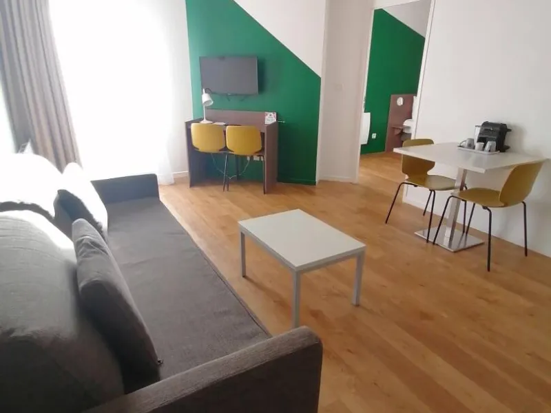 Ideally located near the Poissy RER station, the studios and apartments, which can accommodate up to 4 guests, each feature a fully equipped kitchen, a work area, a bathroom with a bathtub or shower and WC, television, and high-speed internet.Localisation