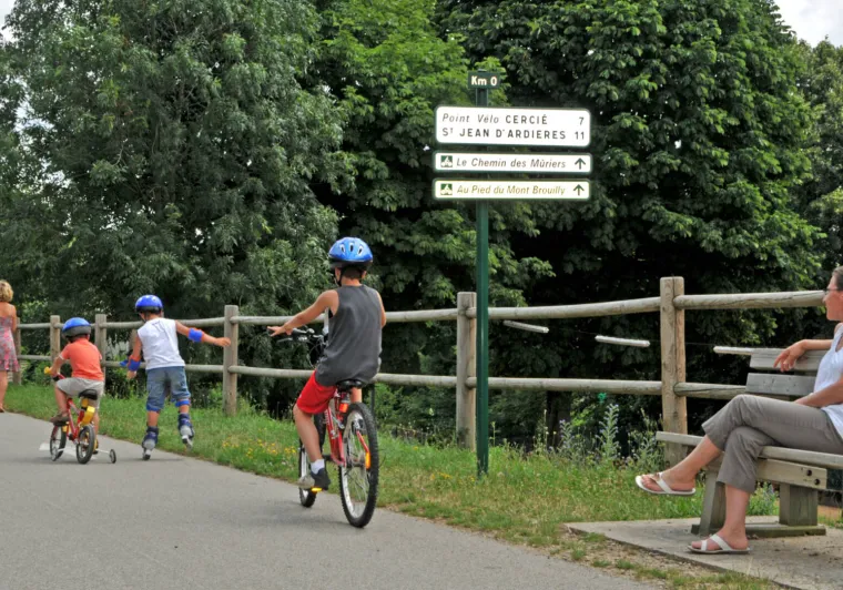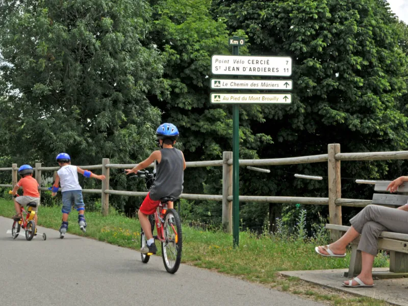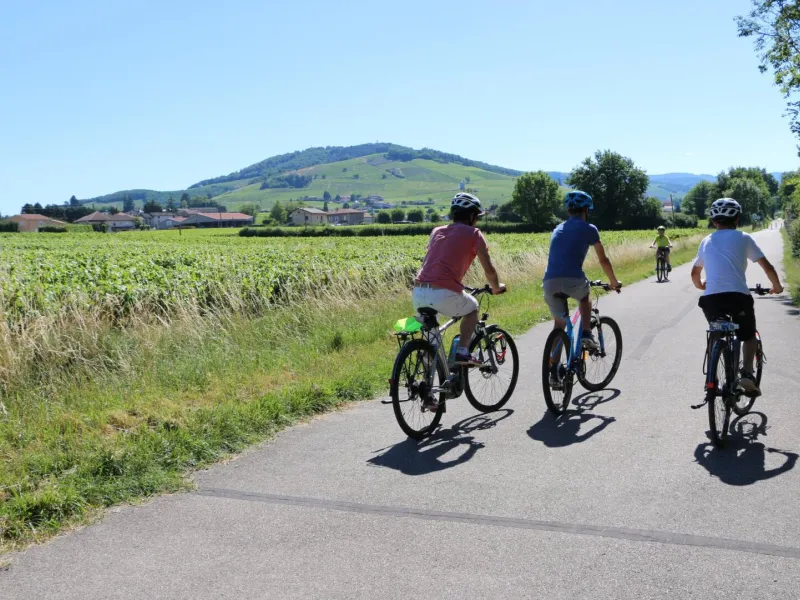 Adult mountain bikes (VTC), adult electric bikes (VAE) and children's mountain bikes for hire 7 days a week from 1 February to 31 December.From Beaujeu, a cycle path leads to the Val de Saône. Running along the Ardières valley, the Voie Verte du Beaujolais was designed to replace the old railway line that linked Belleville to Beaujeu. Away from the cars, this safe and well-maintained route through the countryside is a great place to take a family walk or a more sporting outing. It's a great way to discover the secrets of the Beaujolais countryside.