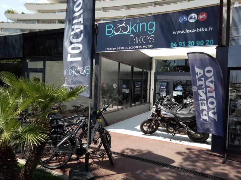 Booking Bikes - Port MarinaAccueil VéloBicycle rentals/ repairs This establishment is Accueil Vélo certified and commits to welcoming cyclists. View its commitmentsDescriptionInterested in this establishment? Visit their website to book or find out more. Call Site webLocalisationPort Marina Baie des Anges 06270 Villeneuve-LoubetMap options Default map background Satellite mapCaption Je débute J'ai l'habitude Aventure Itinéraires connexesInterested in this establishment? Visit their website to book or find out more. Call Site webOther Accueil Vélo nearby La Roue LibreBicycle rentals/ repairsAccueil VéloCagnes-sur-Mer RosaliaBicycle rentals/ repairsAccueil VéloCagnes-sur-Mer Bike'OnBicycle rentals/ repairsAccueil VéloSaint-Laurent-du-Var Booking Bikes Juan Les PinsBicycle rentals/ repairsAccueil VéloAntibes Two For Bike Nice (ex Neway)Bicycle rentals/ repairsAccueil VéloNice ScootizBicycle rentals/ repairsAccueil VéloCagnes-sur-Mer Booking Bikes - Port MarinaBicycle rentals/ repairsAccueil VéloVilleneuve-Loubet SpocBicycle rentals/ repairsAccueil VéloSaint-Laurent-du-Var Booking bikesBicycle rentals/ repairsAccueil VéloAntibesDo you have information to share about this establishment? Highlight a problem Contacter