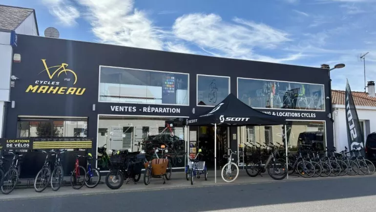 Since 1987, Cycles Maheau, 300 m from the church in Saint-Jean-de-Monts, has been your expert in the sale, hire and repair of bicycles and scooters. Cycle specialists, they offer a top-of-the-range service with a 3D postural study (ID Match). With the "Accueil Vélo" label, they also offer advice on running shoes. Passion and expertise at the service of sports enthusiasts!
