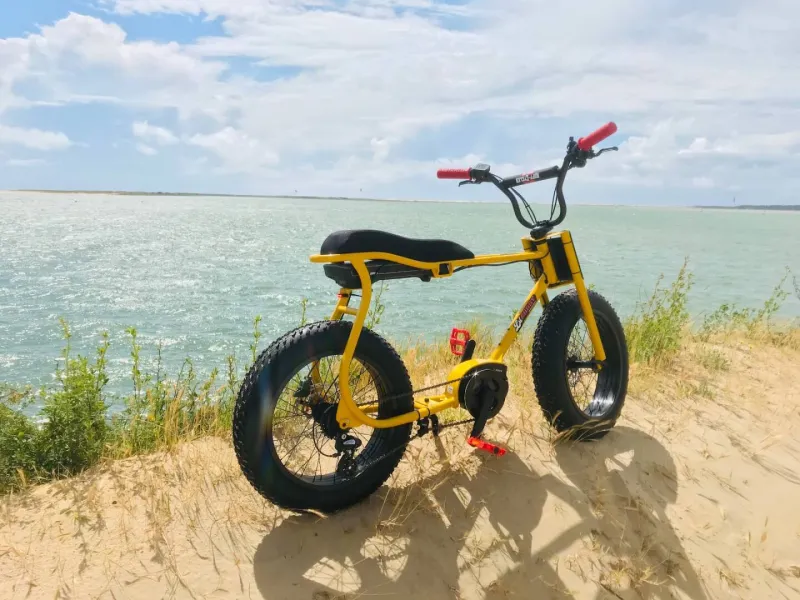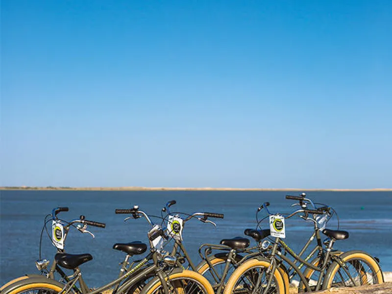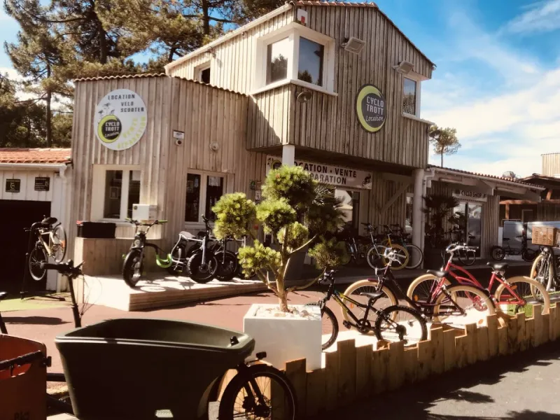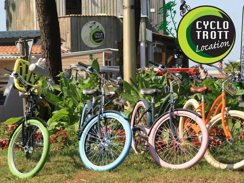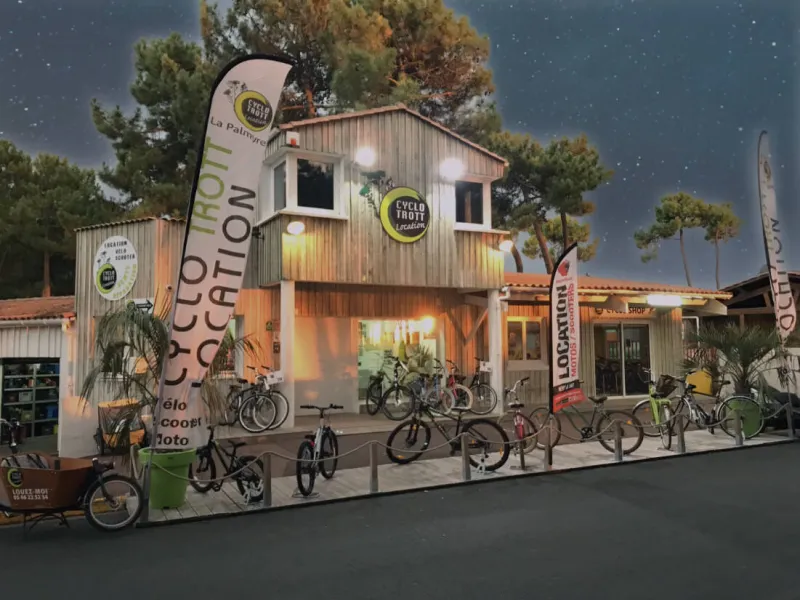While spending holidays in La Palmyre, renting a Cyclo-Trott bicycle is ideal. Our store is located on the port, in the centre of a 40km network of bike tracks. With a few pedal strokes you can join the seaside, city centre, or have a ride in the forest. Cyclo-Troot is labelled Vélodysée and Accueil Velo, and has available to rent: hybrid bike, mountain bike, tandem, electric bike, tricycle, trailers for children, 50cc scooters, 125cc, motorbikes, and “Rosalie” quadricycle.Localisation
