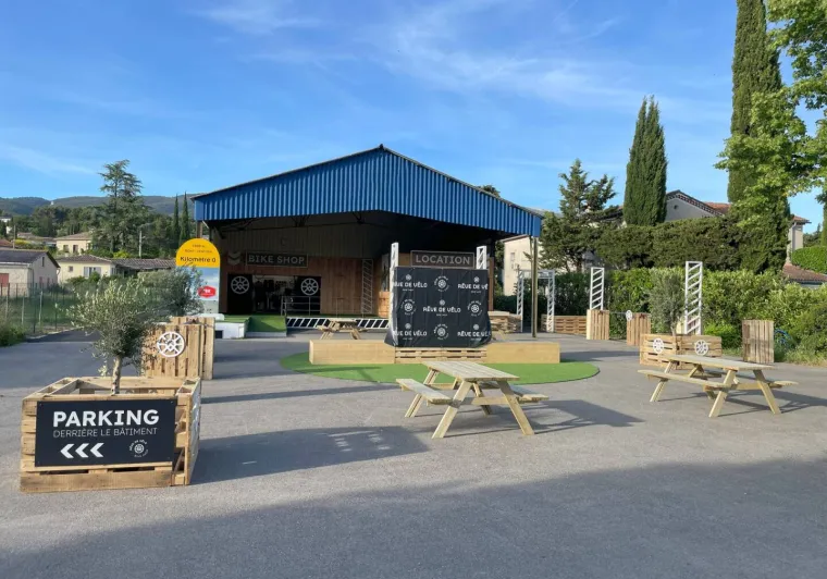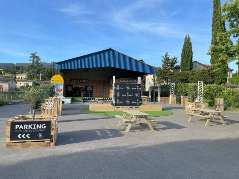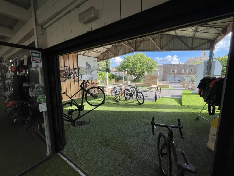 Rêve de Vélo Ventoux is your ideal base camp in Bedoin, located at kilometer 0 of Mont Ventoux, you'll find everything you need: bike rentals of all types (road bikes, electric bikes, VTC, mountain bikes, Gravel), as well as a wide selection of bikes, accessories, textiles, diet products for sale and a repair workshop. The team will be happy to listen to you and meet your expectations.Localisation
