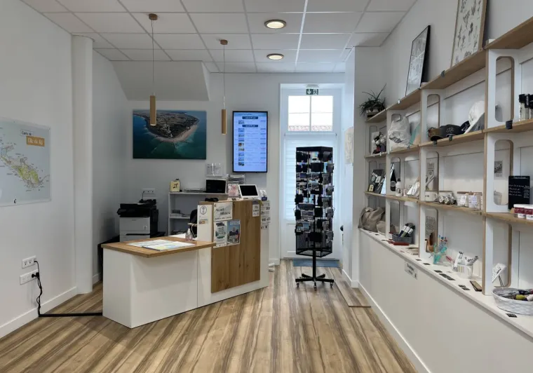 - Shop: postcards, local products (salt, jam, caramel...), souvenirs (Paris coin medal, totebag, posters, pens...), range of "Destination Ile de Ré" products (water bottle, mug, notebook, travel book for children...)