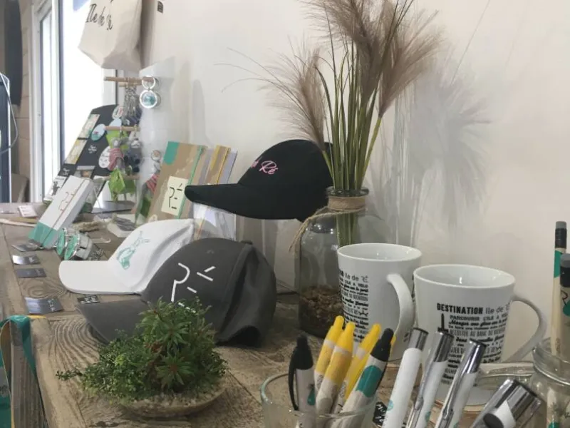 - Shop: postcards, local products (salt, jam, caramel...), souvenirs (Paris coin medal, totebag, posters, pens...), range of "Destination Ile de Ré" products (water bottle, mug, notebook, travel book for children...)