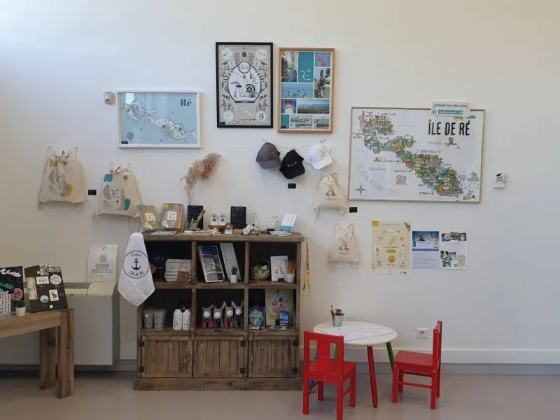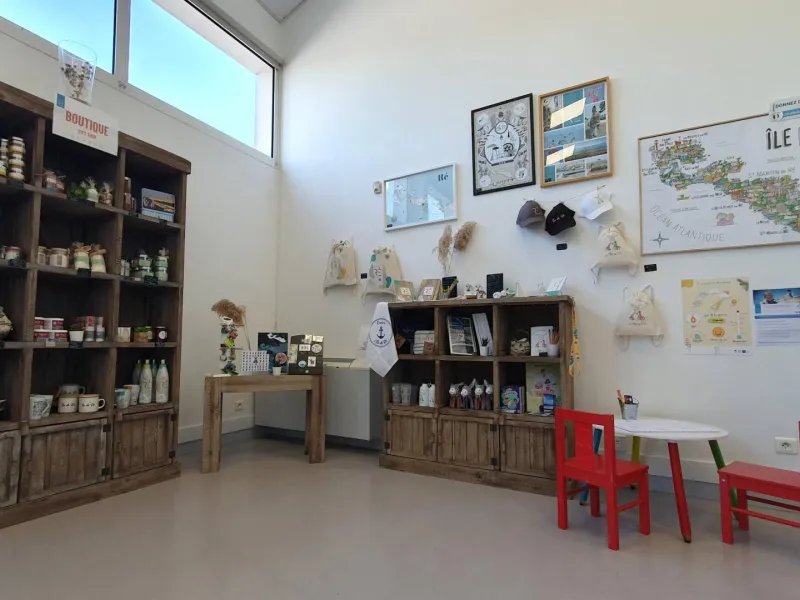 - Shop: postcards, local products (salt, jam, caramel...), souvenirs (Paris coin medal, totebag, posters, pens...), range of "Destination Ile de Ré" products (water bottle, mug, notebook, travel book for children...)