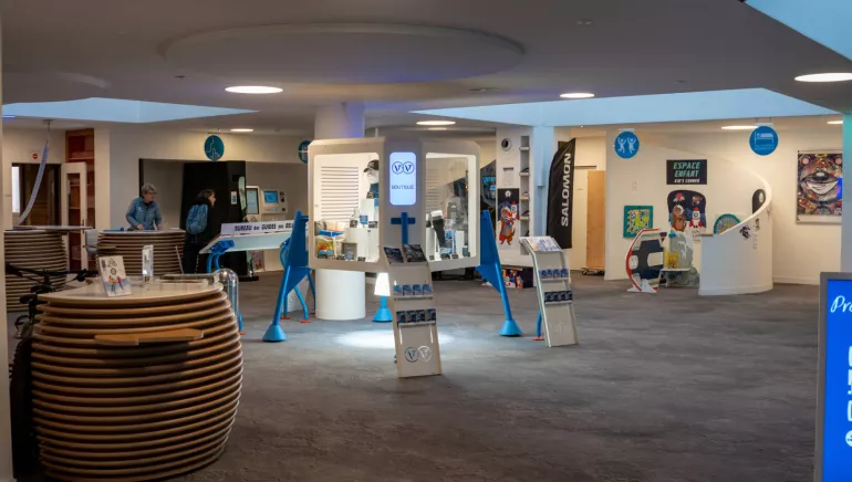 - A shop with a range of Val Thorens, Service des Pistes products: water bottles, posters, boxer shorts, water bottles, hats, headbands, neck warmers, ski socks, hiking and mountain bike maps.